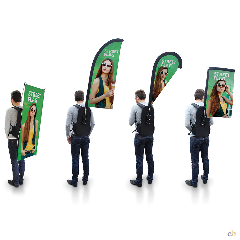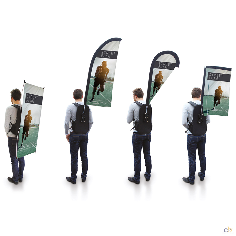 The sturdy and lightweight back pack will accept four different flag shapes which are easily attached using the poles supplied.