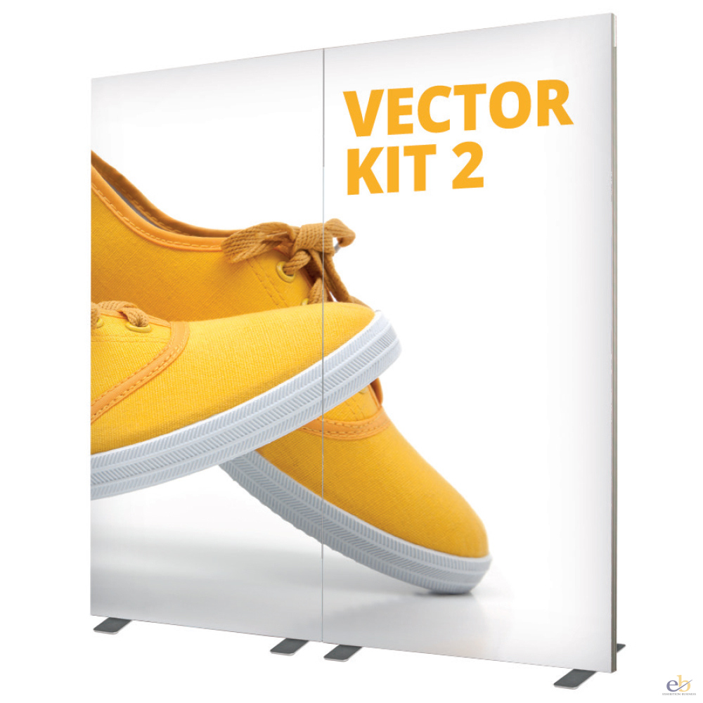Vector is a lightweight, double-sided aluminium modular system designed to create a wide variety of frameless and seamless displays that create impact for all types of permanent or quick-change applications. Use either lightweight fabric or rigid substrates for seamless graphics; which can be applied and replaced in-situ after the kit is assembled.